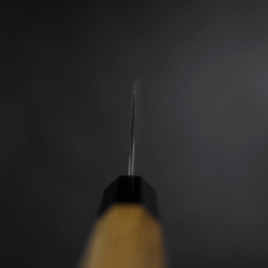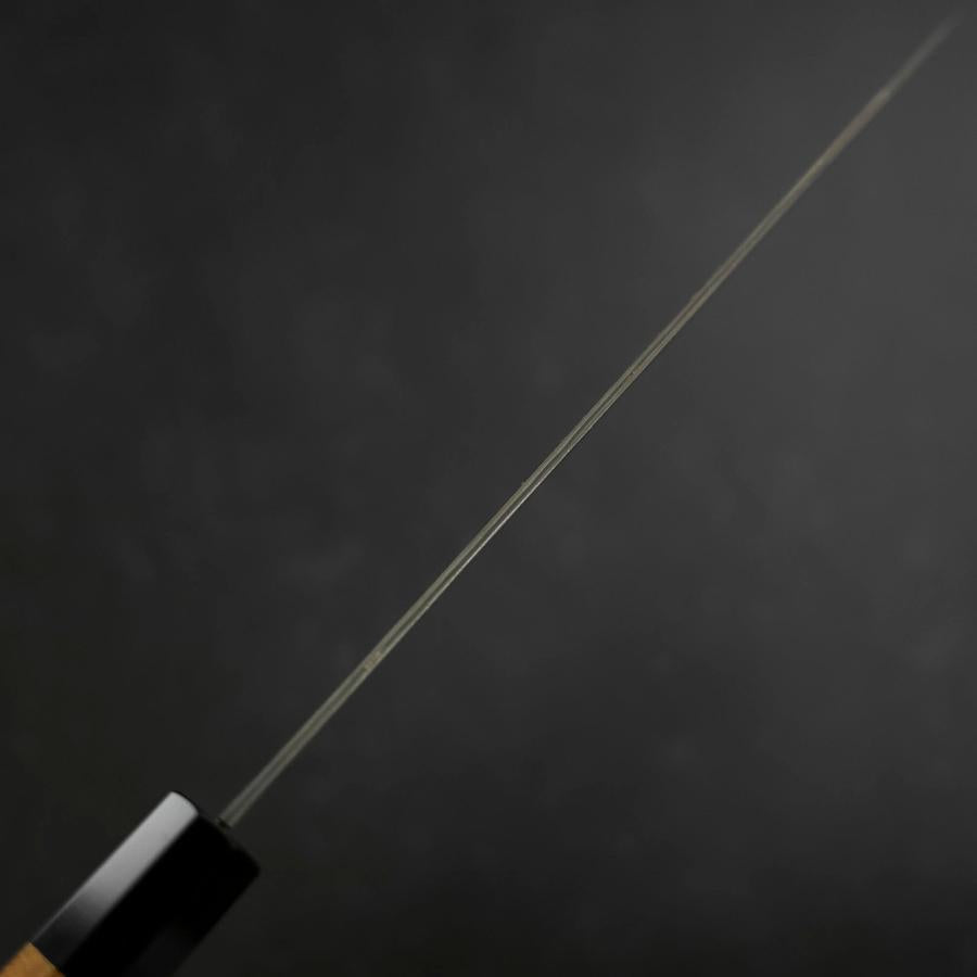 The Gyuto is an all-purpose knife with a pointed tip and a slender blade. The pointed tip enables an easy targeted cut and helps slice meat and fish. It used to be a knife for professional chefs but nowadays is also used by households. Its curved blade helps you apply force to cut food without effort.