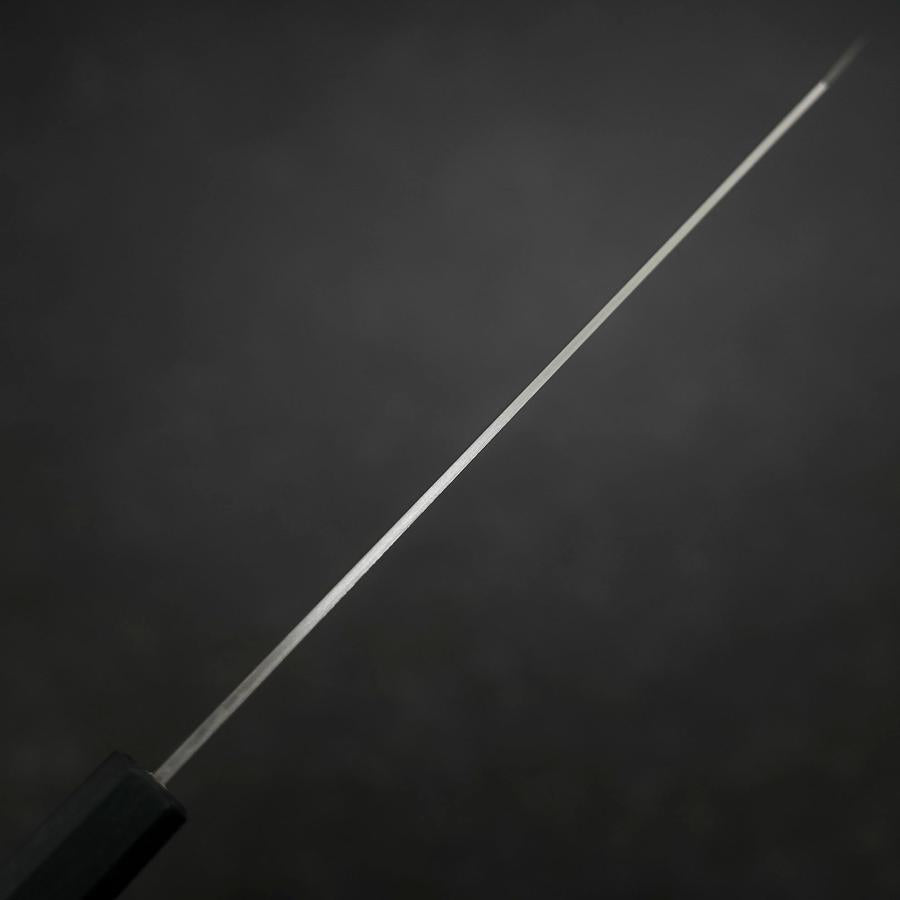 “Kiritsuke” knifes are an all-purpose knife featured a diagonally cut-off tip. Kiritsuke knives are one of the few multipurpose traditional Japanese blades, and can be used as a slicer or a vegetable knife. These sword shaped knives feature a straighter and wider edge than a yanagi for vegetables, and a longer blade than an usuba for slicing fish with ease. The user needs more skill with traditional Japanese knives in order to utilize this unique kiritsuke style design properly. Traditionally, these knives are used only by the chefs as a symbol of status.