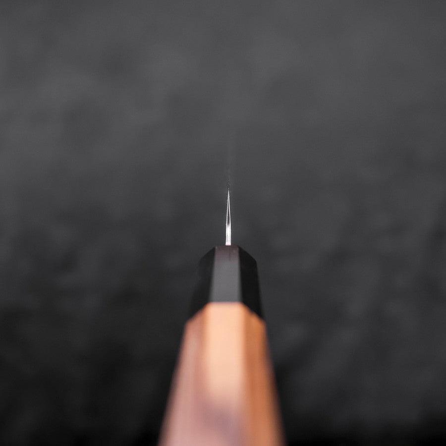 Migaki (Polished) line of knives feature beautiful edge geometry and are quite thin behind the edge and at the spine. They have an excellent cutting feel and are light and feel very nimble and comfortable in the hand.
