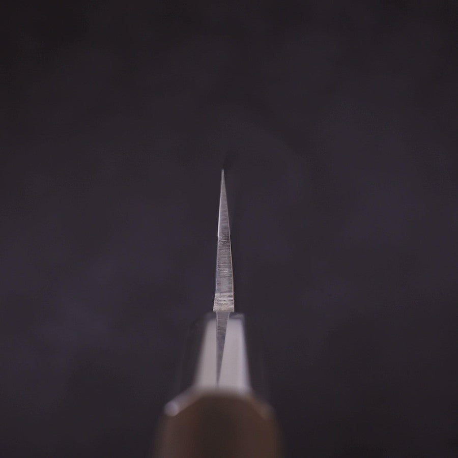 Another reason why professional chef selects Gingami 3 is a good affinity to whetstones at hand re-sharpening. The combination with the soft stainless SUS405 outer layer provides further easiness to the blade sharpening. Neo-Classic Nashiji finish gives irresistible appeal to the series as well. The combination with the soft stainless SUS405 outer layer provides further easiness to the blade sharpening.