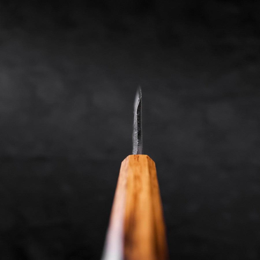 Deba is a sturdy fish knife with a solid and thick blade. The blade doesn't bend even if force is applied. It is often used to remove large fish scales, handle the bones, open the back of the fish, and cut the bones. The blade's thickness and weight can help to cut off fish heads without damaging the blade, as well as the small bones of chicken.