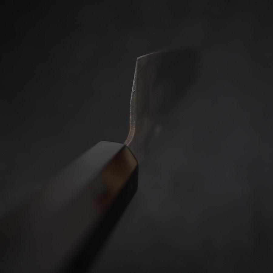This Hamokiri(Honekiri) Blue steel #2 knife is the perfect combination of beauty and performance. Delivering an incredibly sharp an cutting edge, the 270mm blade combined with the buffalo Ebony handle make it both beautiful and functional. The perfect tool for any chef desiring superior craftsmanship and precision.