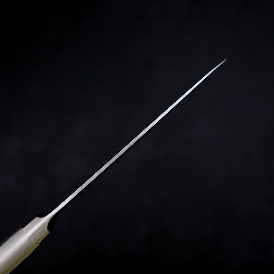 Migaki (Polished) line of knives feature beautiful edge geometry and are quite thin behind the edge and at the spine. They have an excellent cutting feel and are light and feel very nimble and comfortable in the hand.
