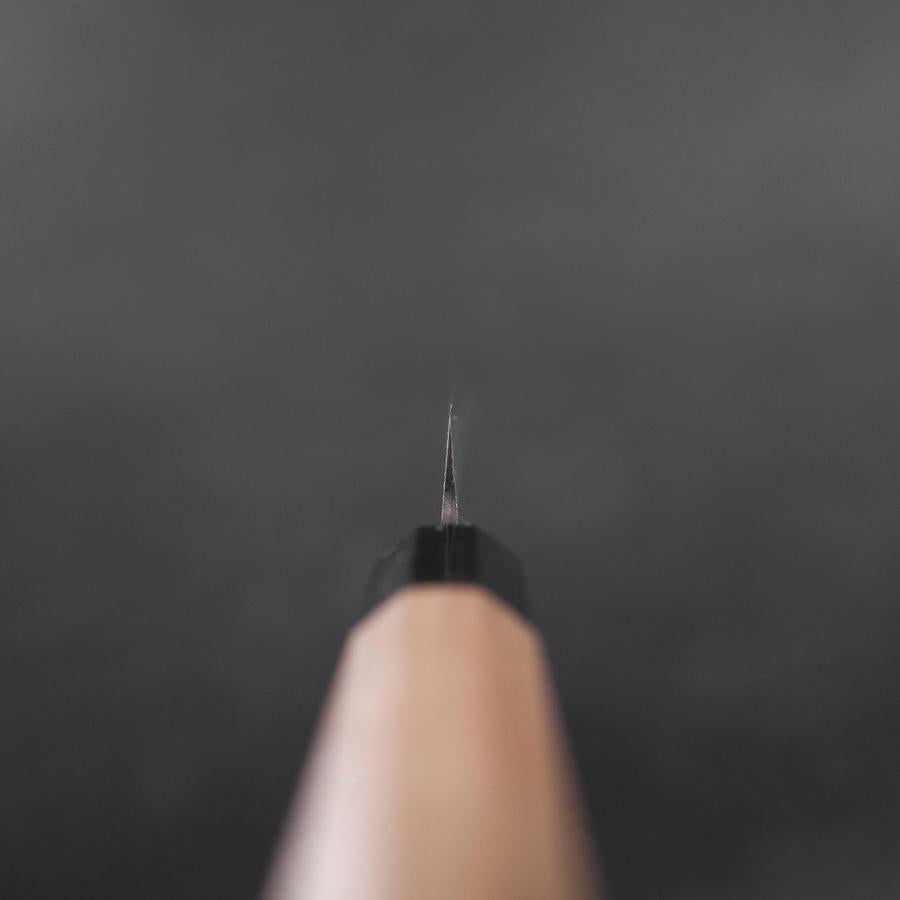 Migaki (Polished) line of knives feature beautiful edge geometry and are quite thin behind the edge and at the spine. They have an excellent cutting feel and are light and feel very nimble and comfortable in the hand.