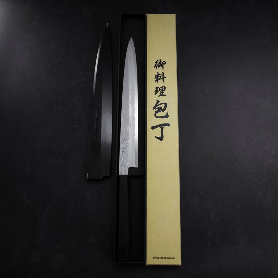 Yanagiba Blue Steel #1 Suminagashi Buffalo Ebony Handle With Sheath 270mm