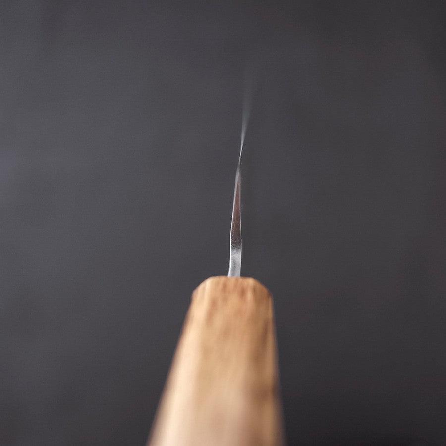 The Yanagi is a long slicing knife that was designed to slice thin slices of fish for sushi and sashimi. The beauty of its elegant thin blade is its ability to slice through an ingredient in long uninterrupted strokes, preserving its integrity and freshness. Even the simplest of tasks are elevated with a handcrafted knife that is as beautiful as it is functional.