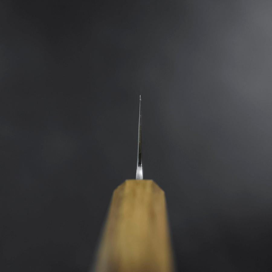 The Gyuto is an all-purpose knife with a pointed tip and a slender blade. The pointed tip enables an easy targeted cut and helps slice meat and fish. It used to be a knife for professional chefs but nowadays is also used by households. Its curved blade helps you apply force to cut food without effort.