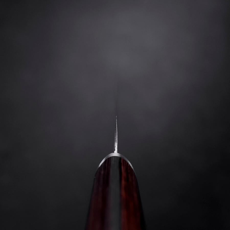 The knife bears visible impressions of the hand-forging process (round hammer dents on the blade), which gives it a beautiful finish and also prevents food from sticking to the blade.
