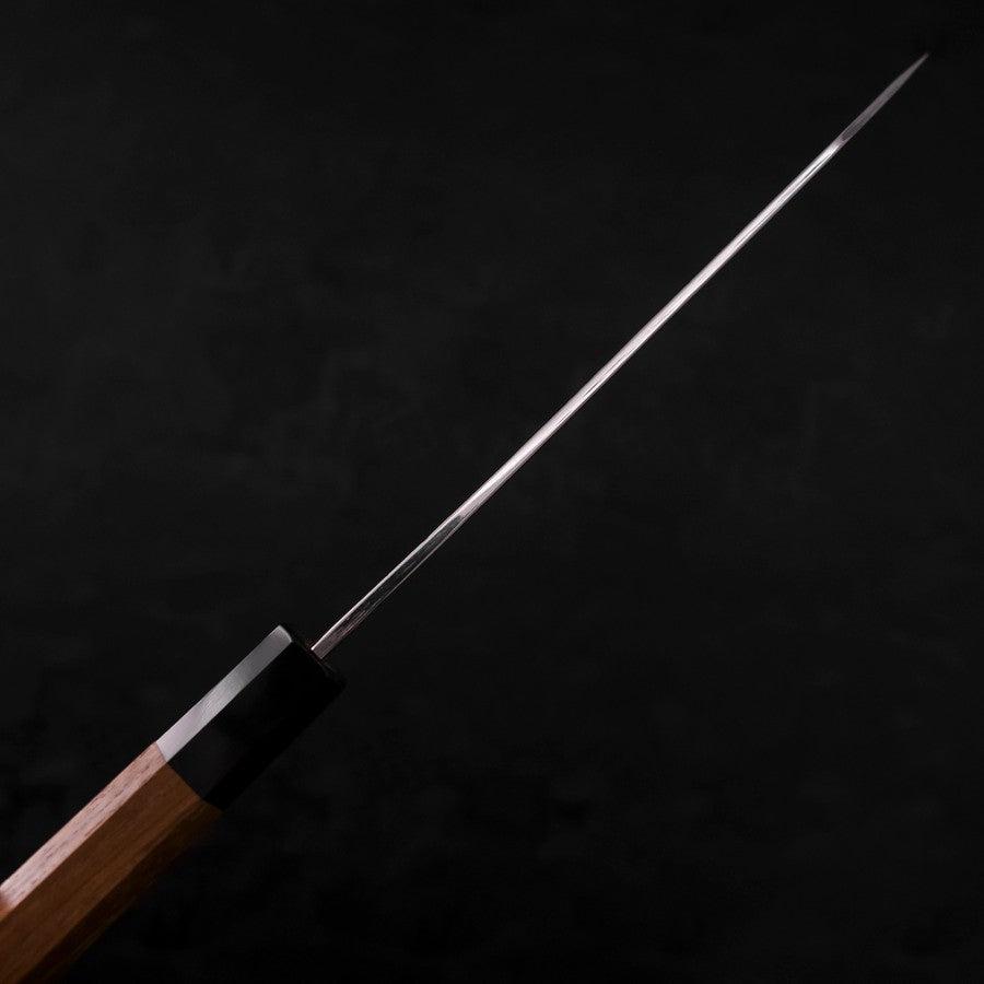 Bunka knives are one of the few multipurpose traditional Japanese blades, and can be used as a slicer or a vegetable knife. These sword shaped knives feature a straighter and wider edge than a Yanagi for vegetables, and a longer blade than an Usuba for slicing fish with ease. The user need to be more skilled with traditional Japanese knives in order to utilize this unique Bunka style design properly. Traditionally, these knives are used only by head chefs as a symbol of status.