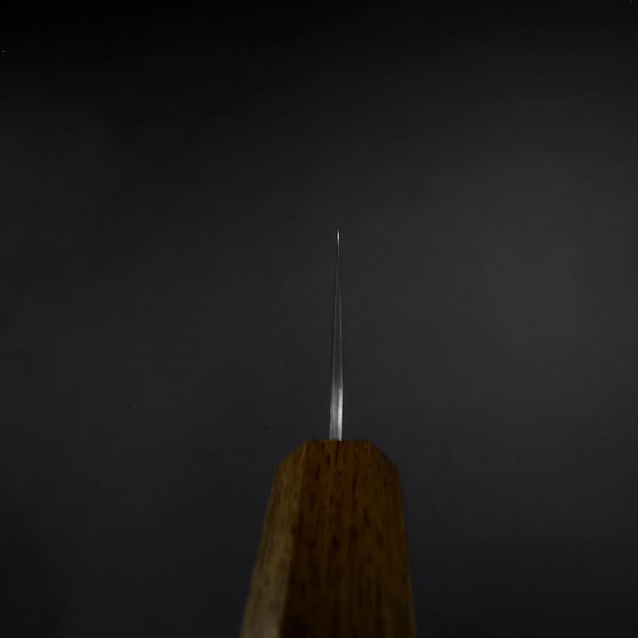 The Gyuto is an all-purpose knife with a pointed tip and a slender blade. The pointed tip enables an easy targeted cut and helps slice meat and fish. It used to be a knife for professional chefs but nowadays is also used by households. Its curved blade helps you apply force to cut food without effort.