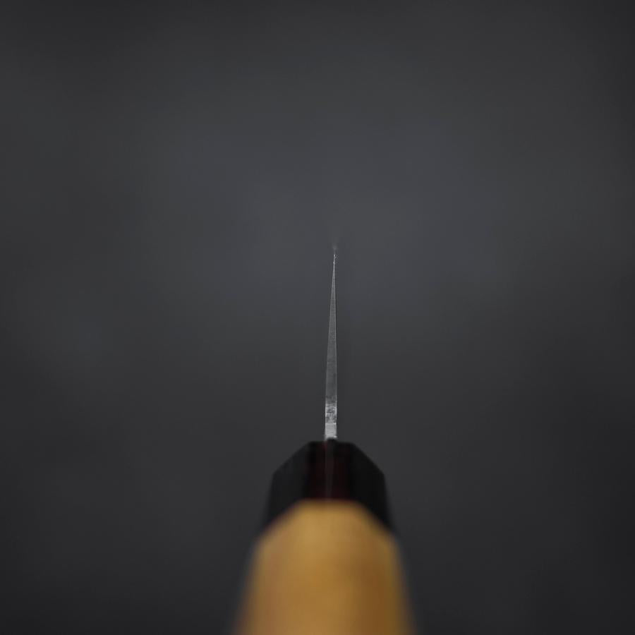 The Gyuto is an all-purpose knife with a pointed tip and a slender blade. The pointed tip enables an easy targeted cut and helps slice meat and fish. It used to be a knife for professional chefs but nowadays is also used by households. Its curved blade helps you apply force to cut food without effort.