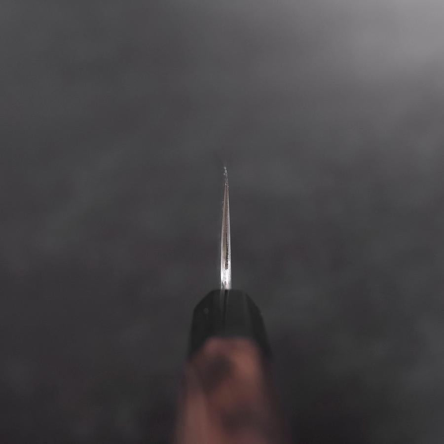The Gyuto is an all-purpose knife with a pointed tip and a slender blade. The pointed tip enables an easy targeted cut and helps slice meat and fish. It used to be a knife for professional chefs but nowadays is also used by households. Its curved blade helps you apply force to cut food without effort.