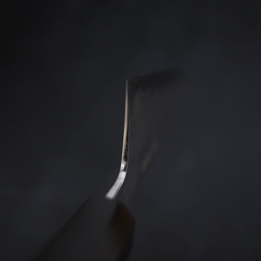 Suminagashi translates as floating ink and refers to the beautiful marbled wave-like patterns that extend through the blade from the tip to the heel, unveiling a new mosaic with every sharpening.