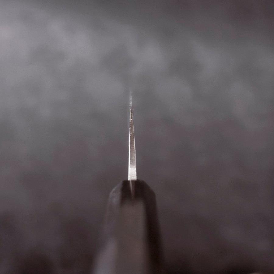 The Gyuto is an all-purpose knife with a pointed tip and a slender blade. The pointed tip enables an easy targeted cut and helps slice meat and fish. It used to be a knife for professional chefs but nowadays is also used by households. Its curved blade helps you apply force to cut food without effort.