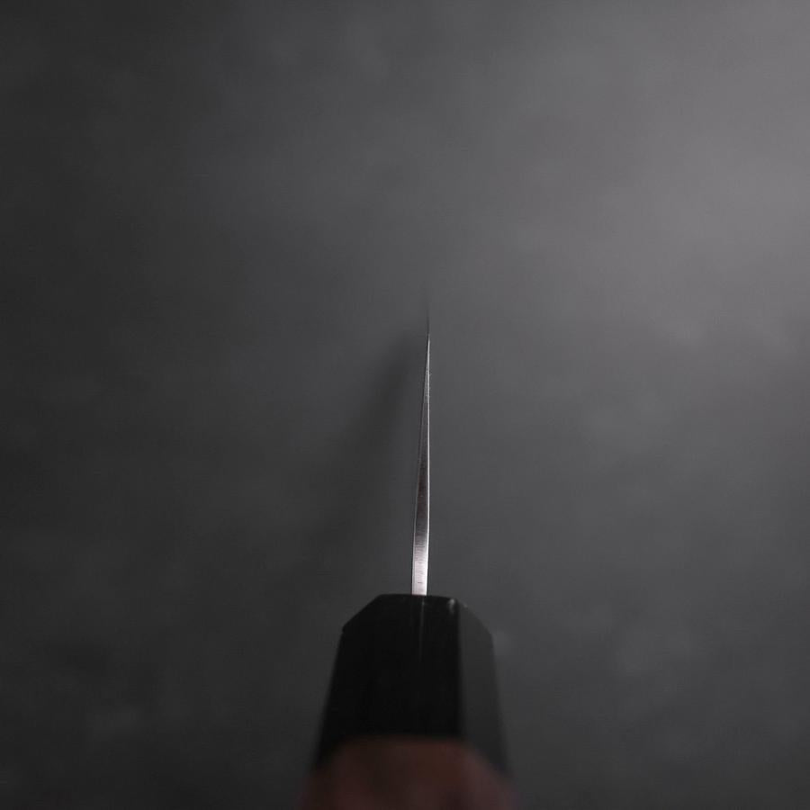 The Gyuto is an all-purpose knife with a pointed tip and a slender blade. The pointed tip enables an easy targeted cut and helps slice meat and fish. It used to be a knife for professional chefs but nowadays is also used by households. Its curved blade helps you apply force to cut food without effort.