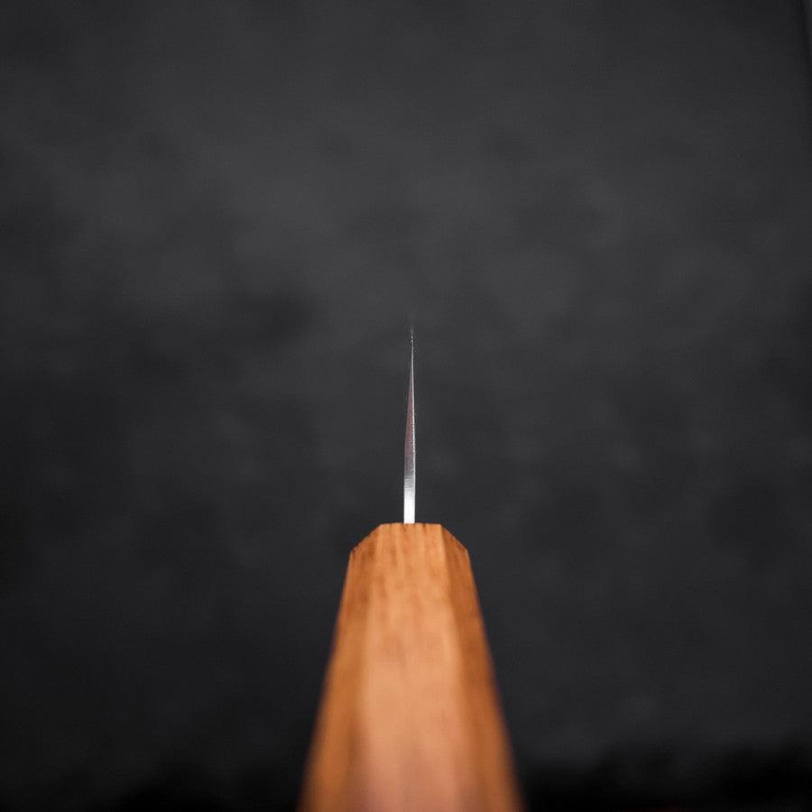 Another reason why professional chef selects Gingami 3 is a good affinity to whetstones at hand re-sharpening. The combination with the soft stainless SUS405 outer layer provides further easiness to the blade sharpening. Neo-Classic Nashiji finish gives irresistible appeal to the series as well. The combination with the soft stainless SUS405 outer layer provides further easiness to the blade sharpening.