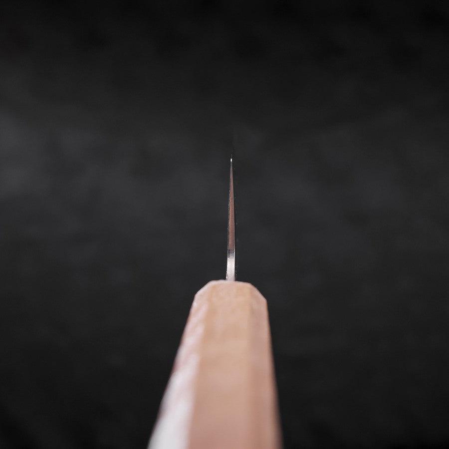 The Gyuto is an all-purpose knife with a pointed tip and a slender blade. The pointed tip enables an easy targeted cut and helps slice meat and fish. It used to be a knife for professional chefs but nowadays is also used by households. Its curved blade helps you apply force to cut food without effort.
