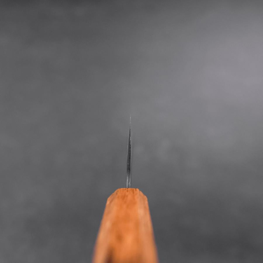 The Gyuto is an all-purpose knife with a pointed tip and a slender blade. The pointed tip enables an easy targeted cut and helps slice meat and fish. It used to be a knife for professional chefs but nowadays is also used by households. Its curved blade helps you apply force to cut food without effort.