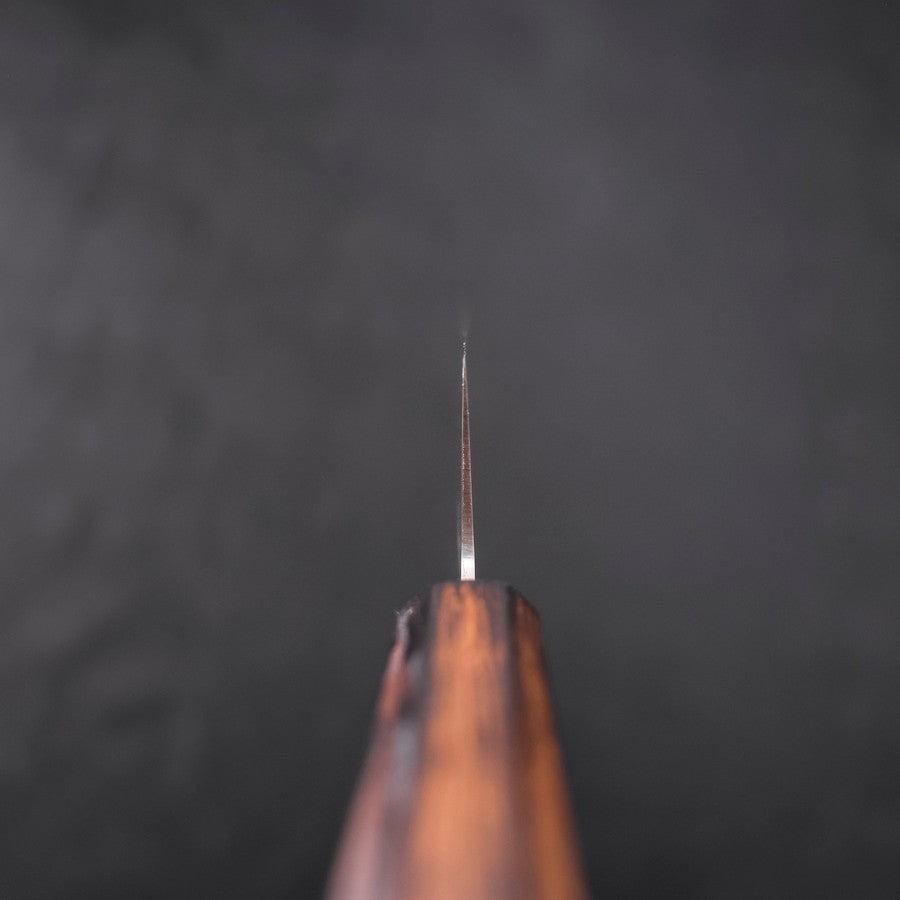 The Gyuto is an all-purpose knife with a pointed tip and a slender blade. The pointed tip enables an easy targeted cut and helps slice meat and fish. It used to be a knife for professional chefs but nowadays is also used by households. Its curved blade helps you apply force to cut food without effort.