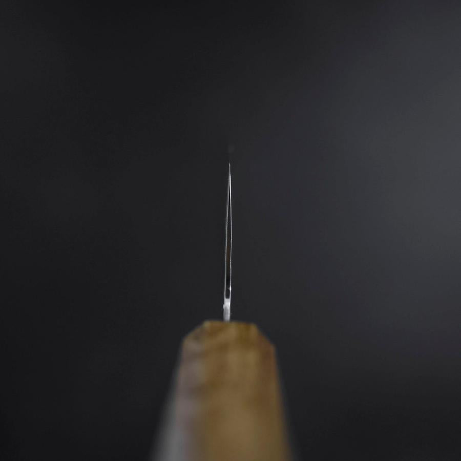 The Gyuto is an all-purpose knife with a pointed tip and a slender blade. The pointed tip enables an easy targeted cut and helps slice meat and fish. It used to be a knife for professional chefs but nowadays is also used by households. Its curved blade helps you apply force to cut food without effort.