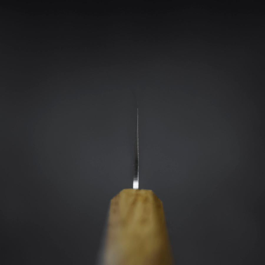 The Gyuto is an all-purpose knife with a pointed tip and a slender blade. The pointed tip enables an easy targeted cut and helps slice meat and fish. It used to be a knife for professional chefs but nowadays is also used by households. Its curved blade helps you apply force to cut food without effort.
