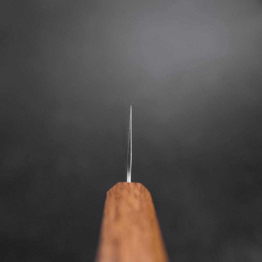 The Gyuto is an all-purpose knife with a pointed tip and a slender blade. The pointed tip enables an easy targeted cut and helps slice meat and fish. It used to be a knife for professional chefs but nowadays is also used by households. Its curved blade helps you apply force to cut food without effort.
