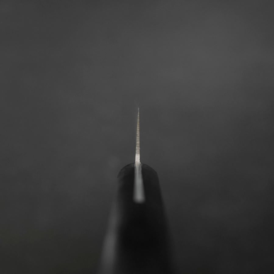 The Gyuto is an all-purpose knife with a pointed tip and a slender blade. The pointed tip enables an easy targeted cut and helps slice meat and fish. It used to be a knife for professional chefs but nowadays is also used by households. Its curved blade helps you apply force to cut food without effort.