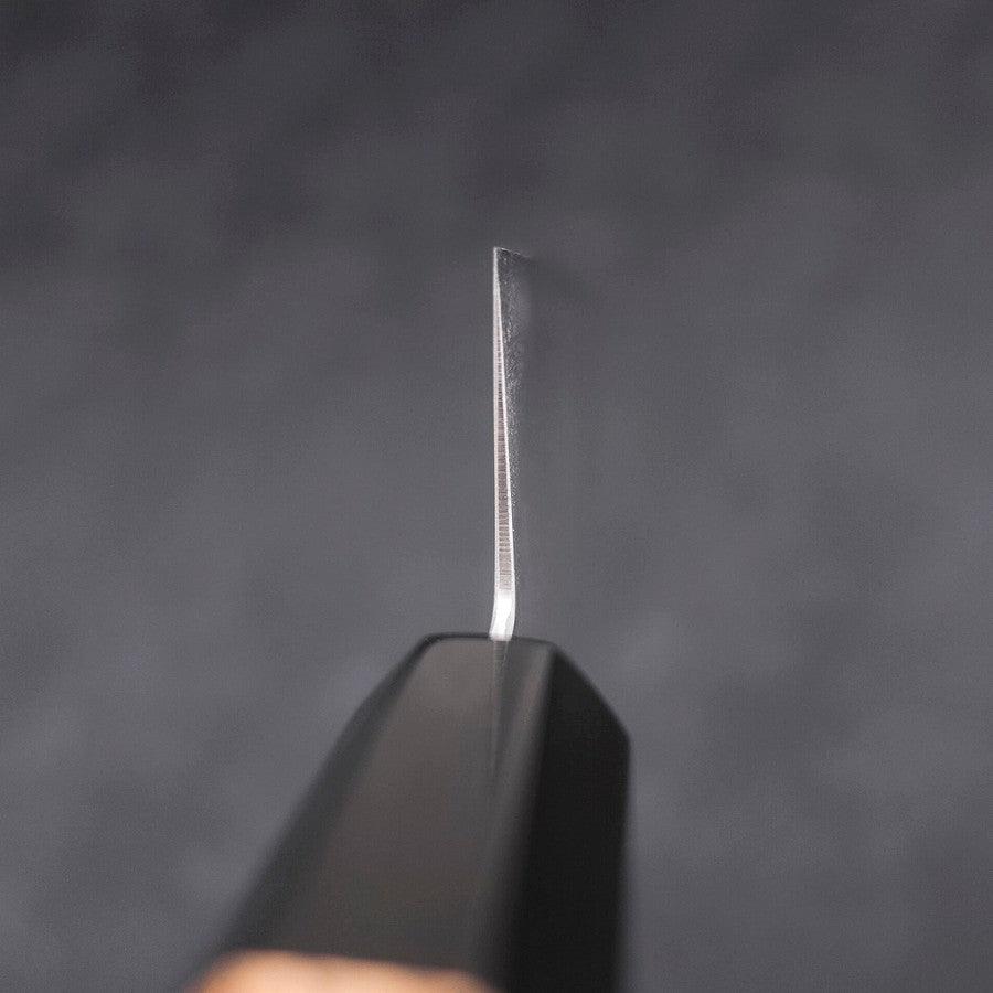 Migaki (Polished) line of knives feature beautiful edge geometry and are quite thin behind the edge and at the spine. They have an excellent cutting feel and are light and feel very nimble and comfortable in the hand.