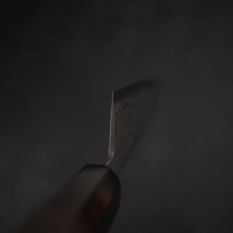 “Kiritsuke” knifes are an all-purpose knife featured a diagonally cut-off tip. Kiritsuke knives are one of the few multipurpose traditional Japanese blades, and can be used as a slicer or a vegetable knife. These sword shaped knives feature a straighter and wider edge than a yanagi for vegetables, and a longer blade than an usuba for slicing fish with ease. The user needs more skill with traditional Japanese knives in order to utilize this unique kiritsuke style design properly. Traditionally, these knives are used only by the chefs as a symbol of status.