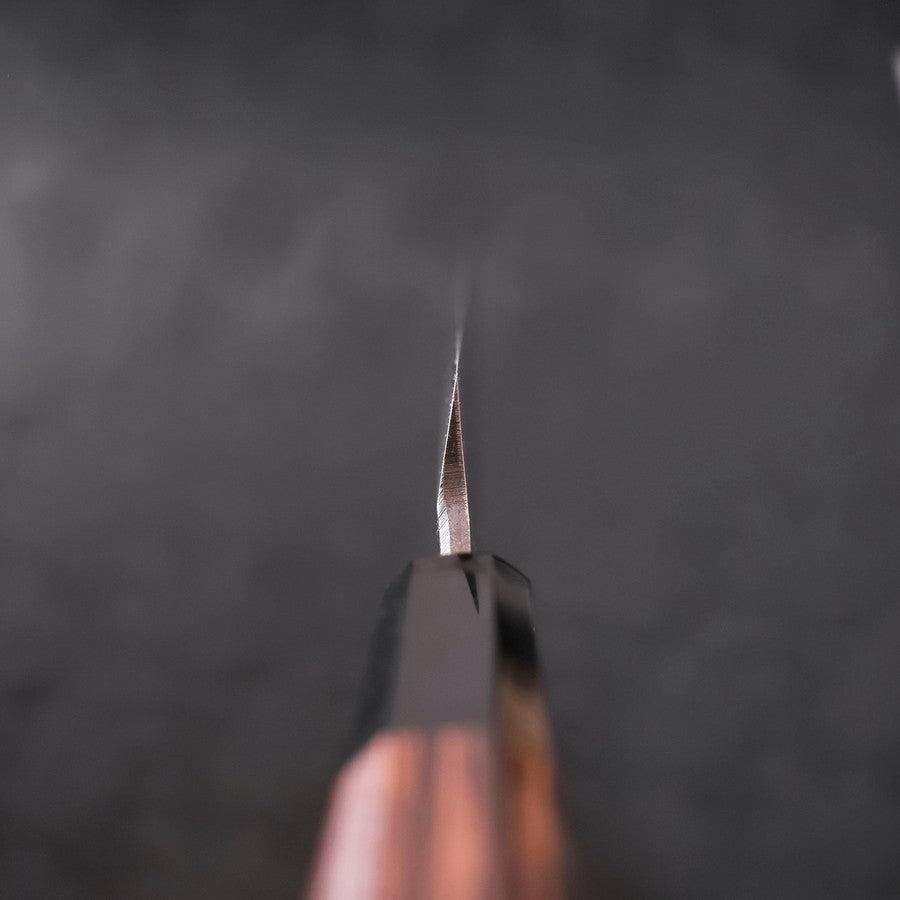 The Yanagi Kiritsuke is slightly heavier with a blade that is wider and a spine that is thicker. The sword tip helps balance the weight of the knife and is recommended for chefs who are interested in a Yanagi but have a smaller working space. Even the simplest of tasks are elevated with a handcrafted knife that is as beautiful as it is functional.