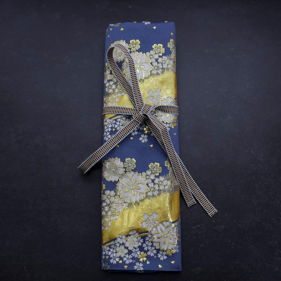 Musashi Japanese Style Kitchen Knife Roll Blue-Golden Sakura River 4 Pockets Handmade