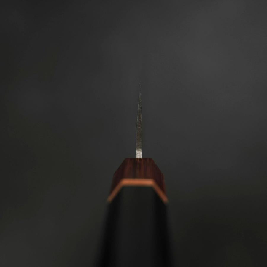 The handles on these knives are Octagonal Oak wood dye Japanese Lacquer (Urushi) that recalls the images of Japanese tradition.