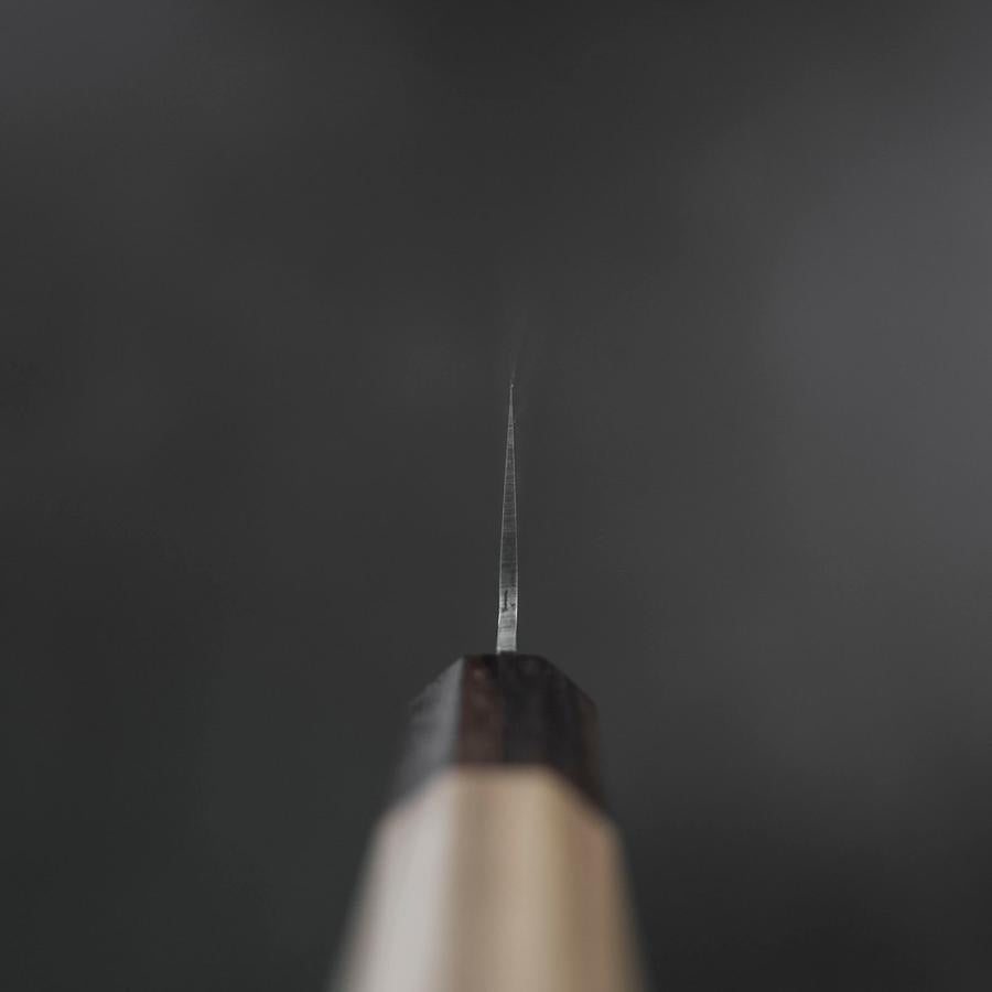 The handles on these knives are Octagonal Oak wood dye Japanese Lacquer (Urushi) that recalls the images of Japanese tradition.