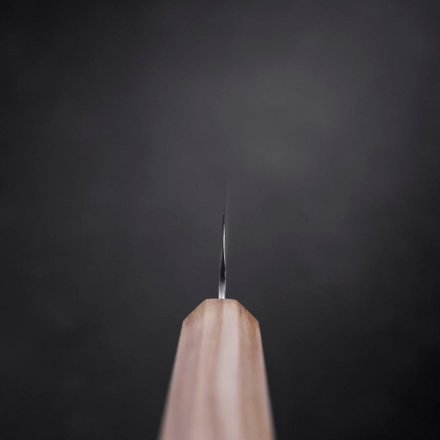Migaki (Polished) line of knives feature beautiful edge geometry and are quite thin behind the edge and at the spine. They have an excellent cutting feel and are light and feel very nimble and comfortable in the hand.