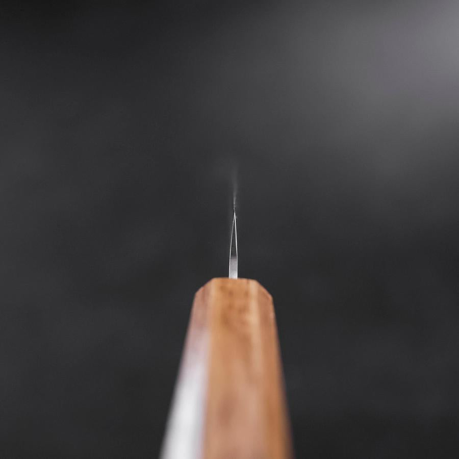 Another reason why professional chef selects Gingami 3 is a good affinity to whetstones at hand re-sharpening. The combination with the soft stainless SUS405 outer layer provides further easiness to the blade sharpening. Neo-Classic Nashiji finish gives irresistible appeal to the series as well. The combination with the soft stainless SUS405 outer layer provides further easiness to the blade sharpening.