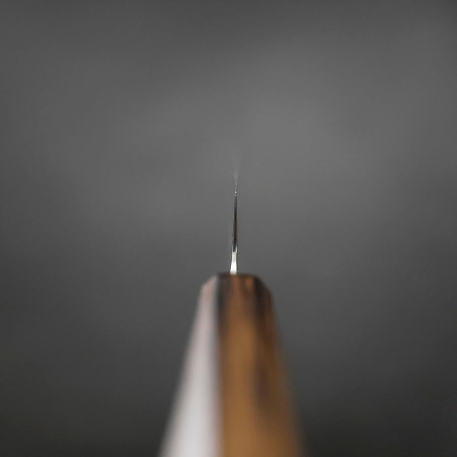 The handles on these knives are Octagonal Oak wood dye Japanese Lacquer (Urushi) that recalls the images of Japanese tradition.