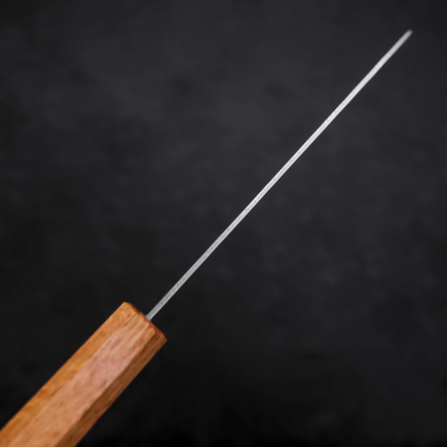 “Santoku" means an all-purpose knife, including meat, fish, and vegetables. It is designed to have both features of Japanese Nakiri (vegetable knife) and Japanese Gyuto (meat knife). Being highly convenient and practical, it is most widely used in households. Recommended for those new to Japanese kitchen knives and novice cooks.