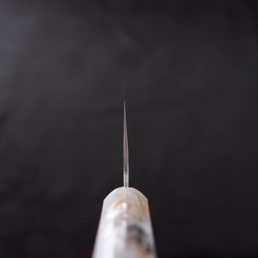 Another reason why professional chef selects Gingami 3 is a good affinity to whetstones at hand re-sharpening. The combination with the soft stainless SUS405 outer layer provides further easiness to the blade sharpening. Neo-Classic Nashiji finish gives irresistible appeal to the series as well. The combination with the soft stainless SUS405 outer layer provides further easiness to the blade sharpening.
