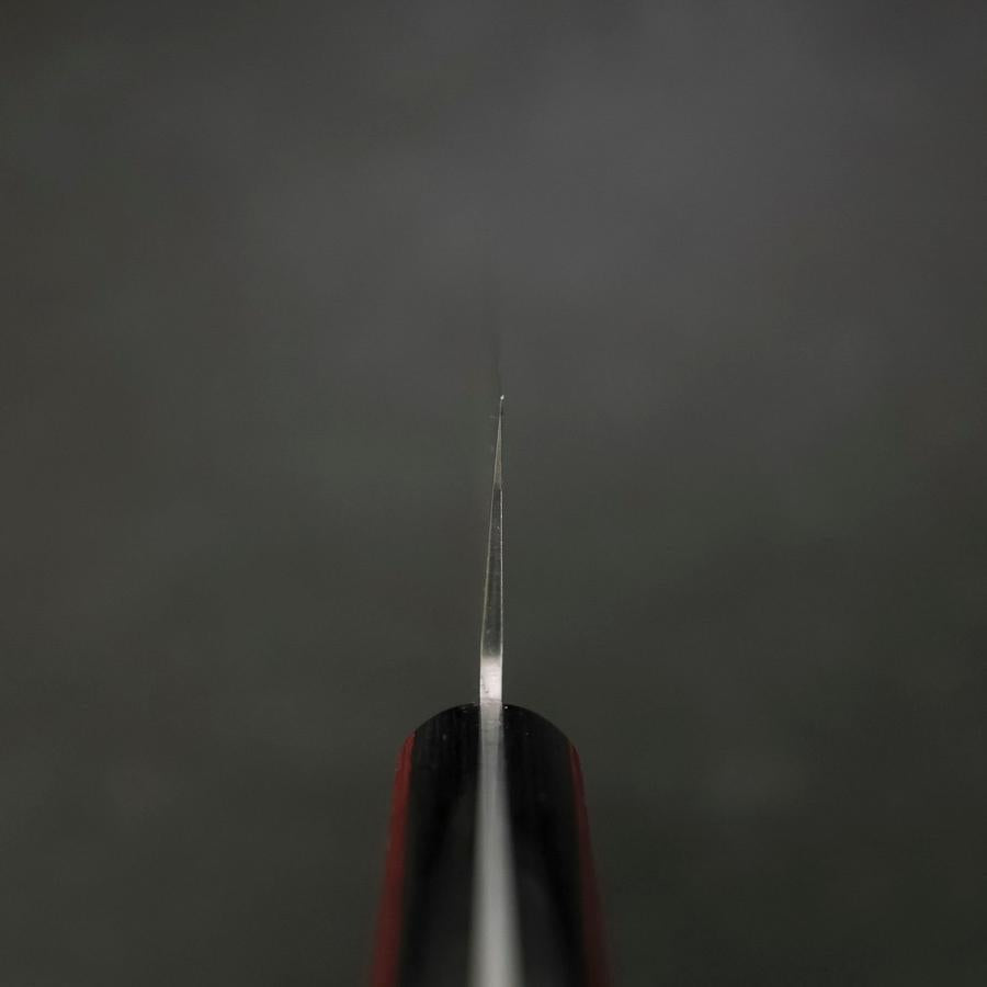 Gingami 3 is categorized to stainless steel for its 13-14.5% Chromium blending ratio. Although it’s a corrosion-resistant stainless steel, actual feel of cutting is closer to the high-end carbon steel, The edge is not slippy but significantly grabbing object fibers.