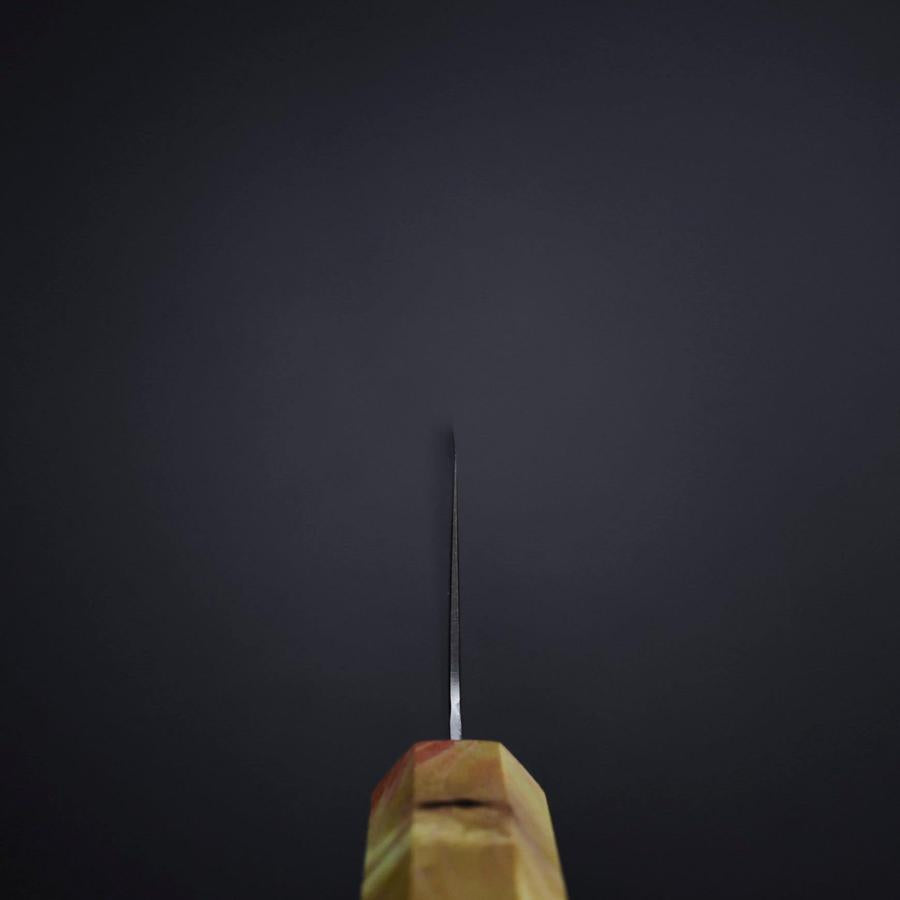 Migaki (Polished) line of knives feature beautiful edge geometry and are quite thin behind the edge and at the spine. They have an excellent cutting feel and are light and feel very nimble and comfortable in the hand.