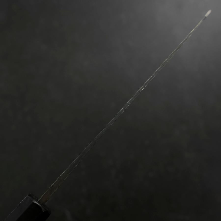 V-Toku 2 consists of approximately 1.05% carbon (C), 0.25% chromium (Cr), 1.25% tungsten (W), and less than 0.20% vanadium (V). This well-balanced composition allows the steel to achieve a remarkably high hardness of HRC 64 or more after heat treatment, contributing to its long-lasting sharpness.