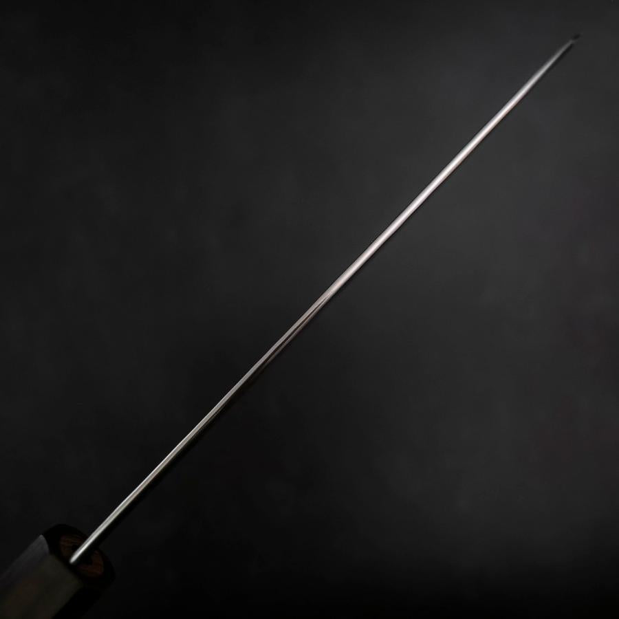 The handles on these knives are Octagonal Oak wood dye Japanese Lacquer (Urushi) that recalls the images of Japanese tradition.