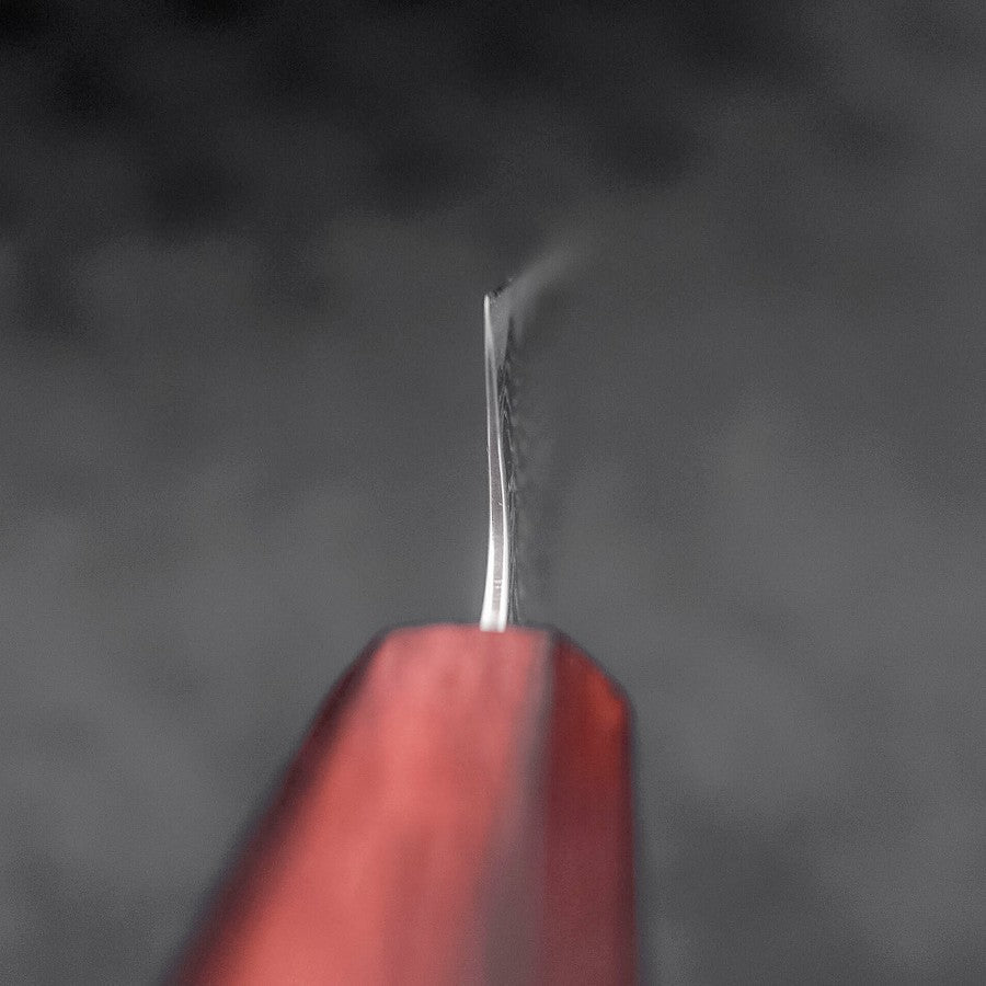 Sujihiki translates literally to 'Flesh Slicer' and it does exactly what the name suggests. It's perfect for carving and slicing roasts, turkey, raw meats, fish, and all other proteins. The extended blade length allows you to slice with one long stroke instead of sliding the knife back and forth in a sawing motion, and the reduced surface area prevents the blade from sticking to the meat. With a Sujihiki, clean slices of brisket or ultra thin will become a breeze to execute.