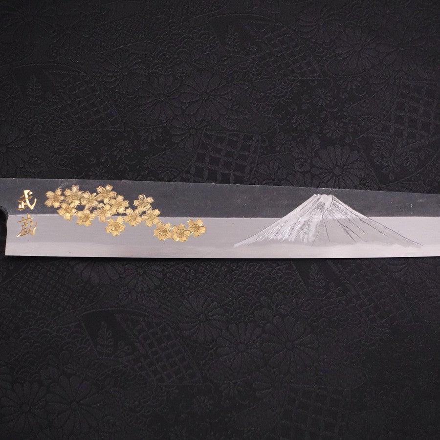 Yanagiba Blue Steel #2 Kurouchi Chokin Sakura-Fuji Buffalo Ebony Handle 300mm