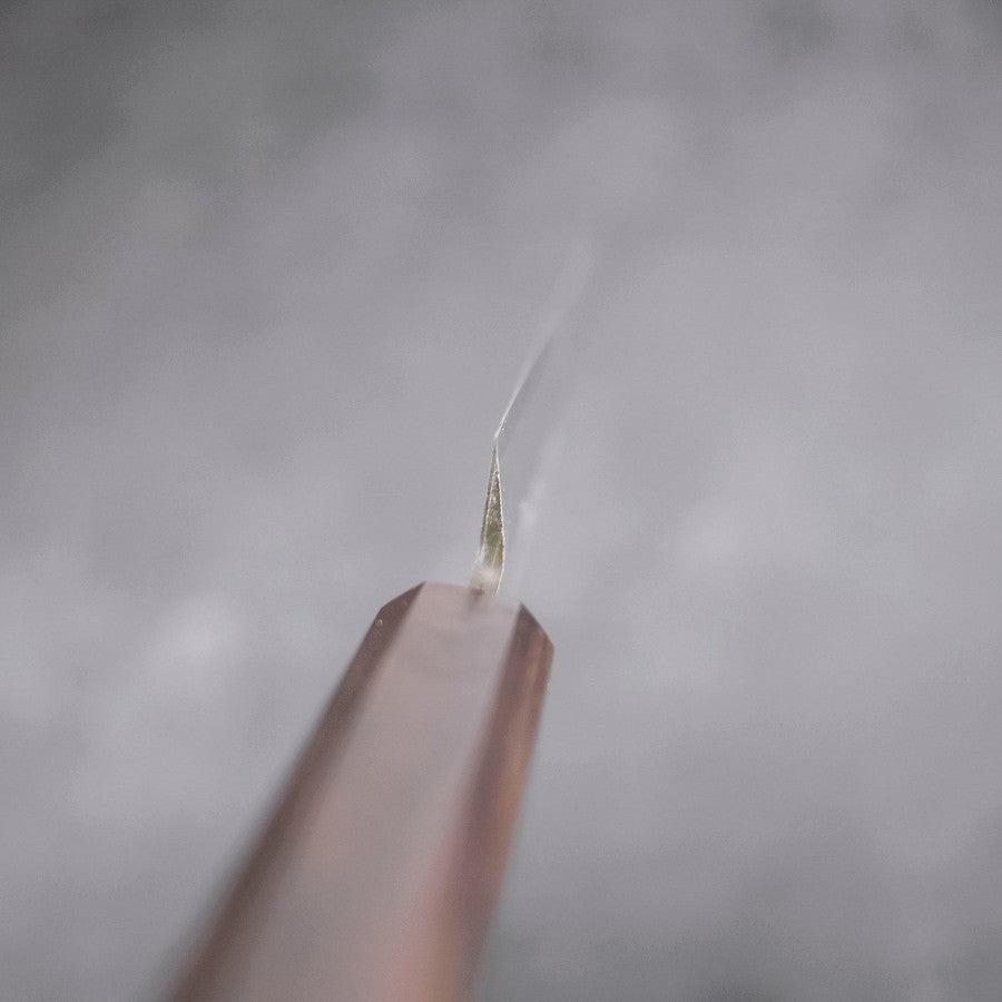 Migaki (Polished) line of knives feature beautiful edge geometry and are quite thin behind the edge and at the spine. They have an excellent cutting feel and are light and feel very nimble and comfortable in the hand.